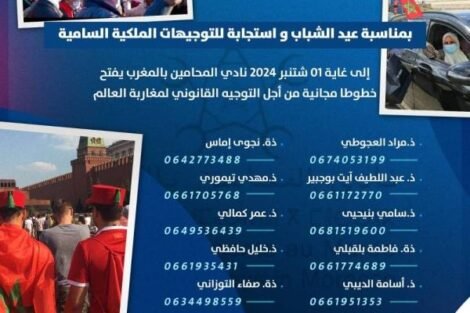 وخصص نادي المحامين بالمغرب في هاته الدورة 10 أرقام هاتفية، سيقوم من خلالها أعضاء النادي بتقديم توجيهات قانونية لمغاربة العالم، وذلك حتى تاريخ الأول من شتنبر المقبل. وعلى مدار عشرة أيام، سيتولى نادي المحامين بالمغرب توجيه أعضاء الجالية المغربية بالخارج الذين لديهم مشاكل إدارية أو ذات طبيعة قضائية، والرد على استفساراتهم.