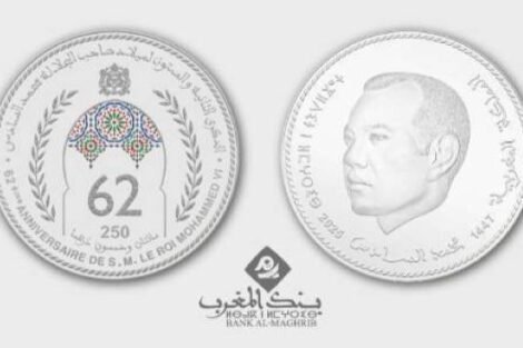 أصدر بنك المغرب قطعة نقدية تذكارية فضية من فئة 250 درهما، وذلك تخليدا للذكرى الثانية والستين لميلاد صاحب الجلالة الملك محمد السادس.