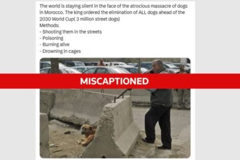 كشفت وكالة “رويترز” للأنباء حقيقة صورة متداولة على نطاق واسع عبر مواقع التواصل الاجتماعي، ادعى ناشروها أنها توثق لما وصفوه بـ”مجزرة” ضد الكلاب في المغرب في سياق استعدادات المملكة لاحتضان كأس العالم لكرة القدم 2030، مؤكدة أن الادعاأت المرافقة لها “مضللة” وأن الصورة لا تمت للمغرب بصلة.